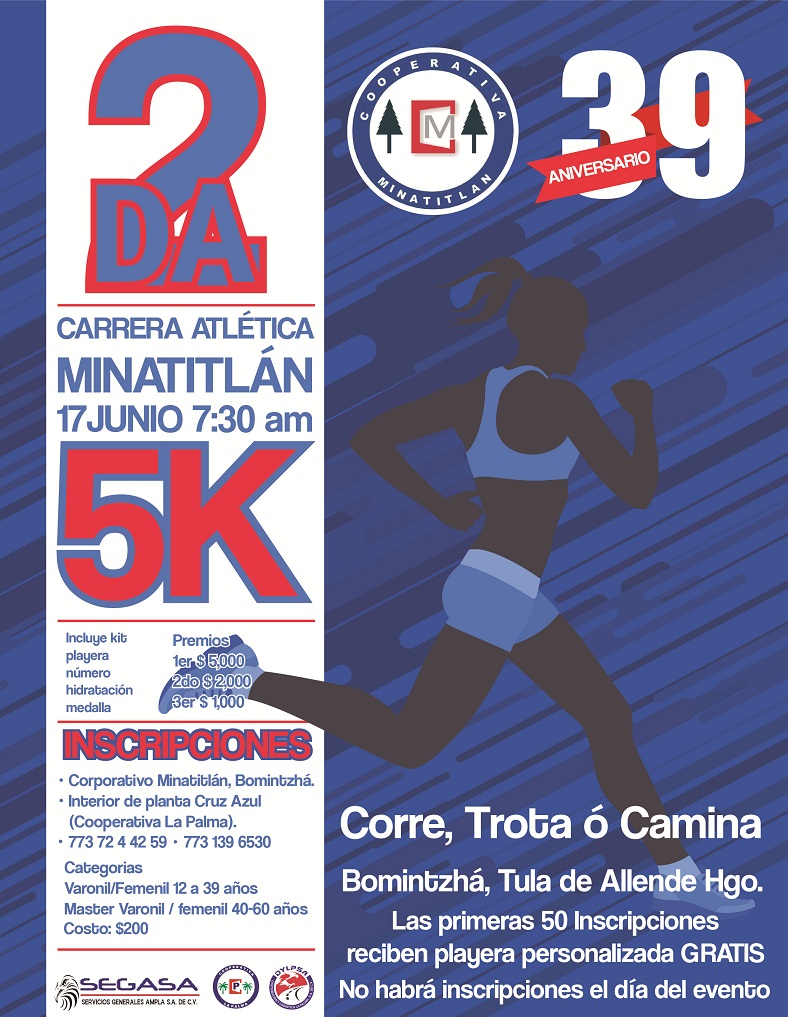 2a.CARRERA ATLETICA 5K MINATITLAN HIDALGO 17 JUNIO 2018
