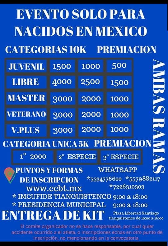 3a.CARRERA 5K Y 10K “MARTIN MONDRAGON ” 07/OCT/18 TIANGUISTENCO10 septiembre, 2018 / 2018 ¡Inscríbete ahora a tu evento!