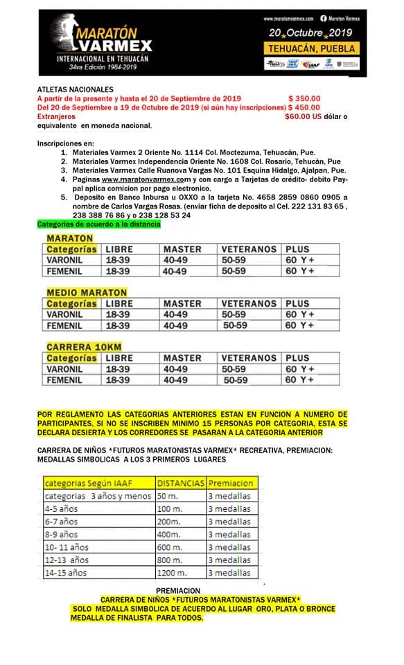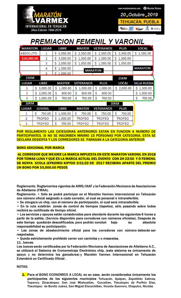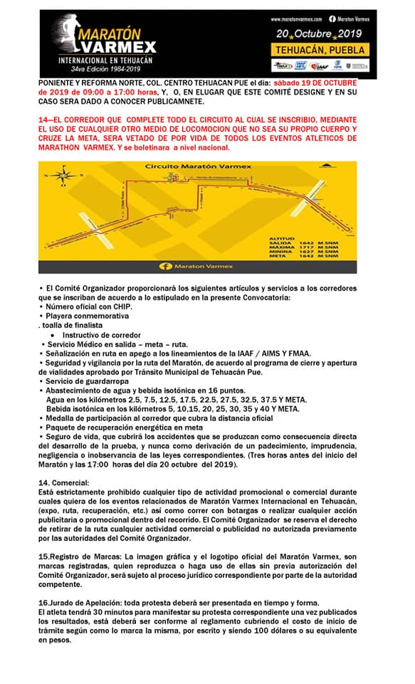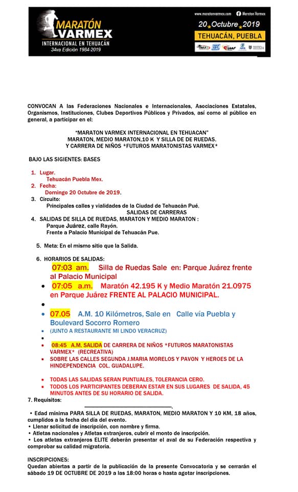 3er. MARATON “VARMEX” TEHUACAN 20 OCTUBRE 201929 julio, 2019 / 2019, Eventos Maraton 21k y 10km ¡Inscríbete ahora a tu evento!