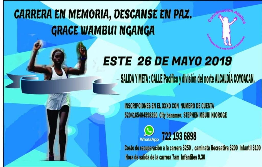 CARRERA EN MEMORIA DE GRACE WAMBUI NGANGA 26 MAYO 2019 COYOACAN CD. MEXICO10 marzo, 2019 / 2019, Eventos ¡Inscríbete ahora a tu evento!
