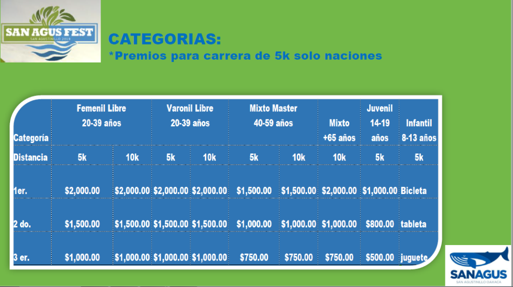 San Agus Fest- San Agustinillo,Carrera 5k y 10K 17 Marzo 2019 Premios Efectivo $$$$$$ Oaxaca
