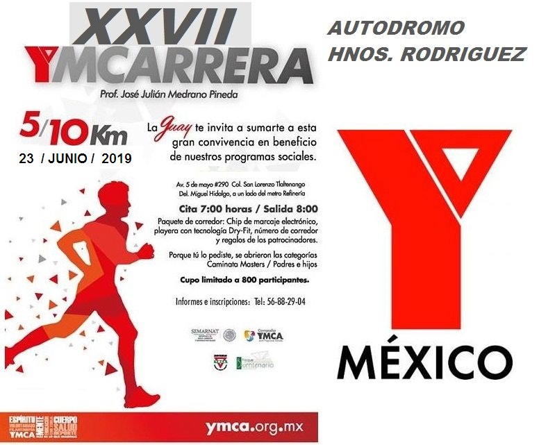 XXVII YMCARRERA 5K Y 10K “José Julián Medrano Pineda” Autodromo Hermanos Rodriguez 23 junio 20196 junio, 2019 / 2019, Eventos ¡Inscríbete ahora a tu evento!