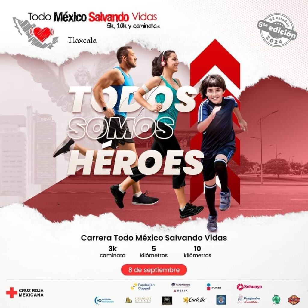 La delegación estatal de la Cruz Roja convocó a la ciudadanía tlaxcalteca a sumarse a la quinta edición de la carrera “Todo México Salvando Vidas”, cuyo objetivo es generar hábitos preventivos de salud entre la población, además de colectar recursos en beneficio de la benemérita institución.