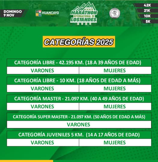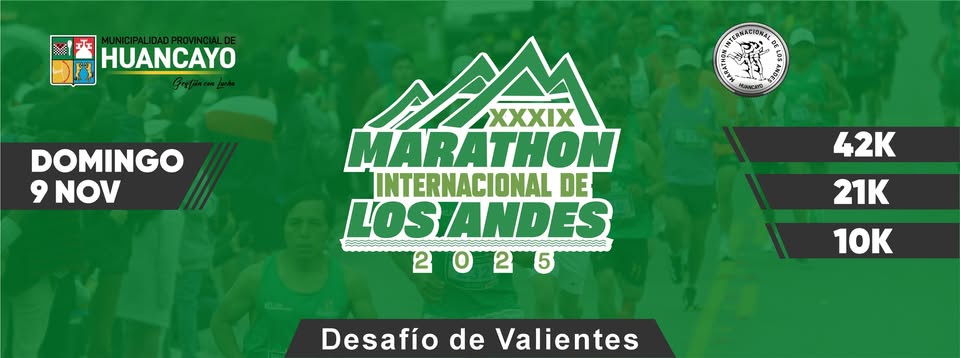 XXXIX MARATHON INTERNACIONAL LOS ANDES, HUANCAYO PERU DOMINGO 9 DE NOVIEMBRE 2025 MARATHON 21K , 10K Y 5K3 septiembre, 2025 / 2025, Eventos ¡Inscríbete ahora a tu evento!
